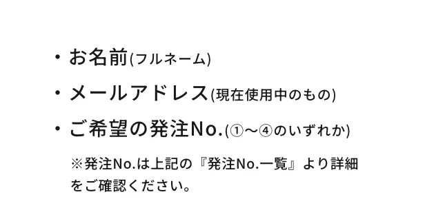 ご希望の発注No.(①~④のどれか)をLINEメッセージにてお知らせください。