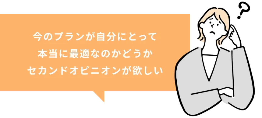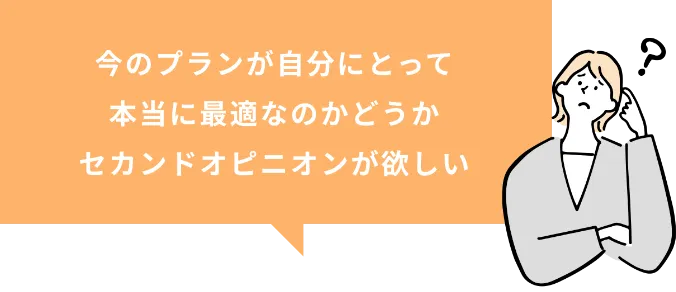 あなたの不安や疑問を細かくお聞きしたうえで、今のプランがあなたにとって